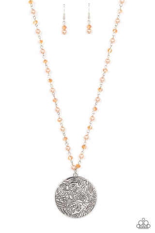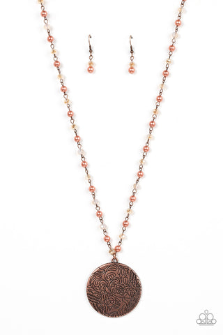 Secret Cottage - Copper - Flower Pendant with Brown Pearl Chain Paparazzi Long Necklace