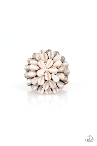 Blooming Balance - Red - and Iridescent Gem Silver Flower Paparazzi Stretchy Bracelet