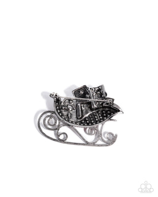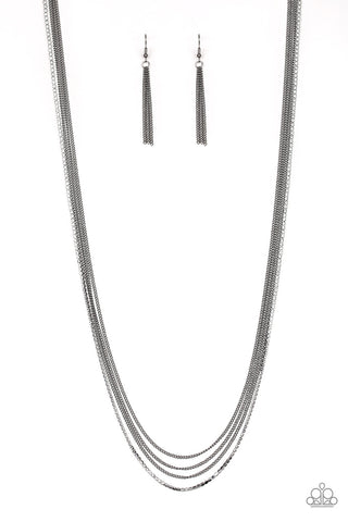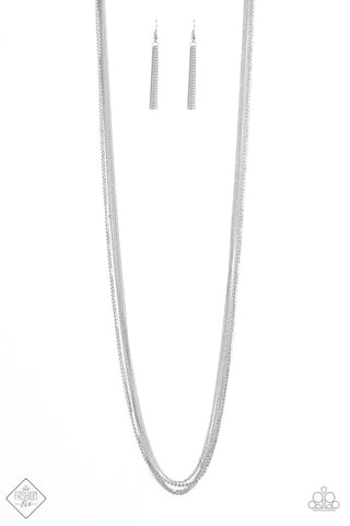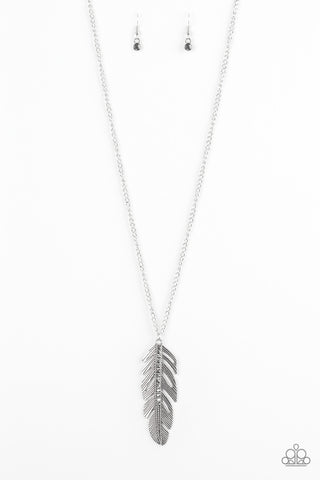 Sky Quest - Silver - Hematite Rhinestone Center Feather Paparazzi Long Necklace