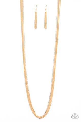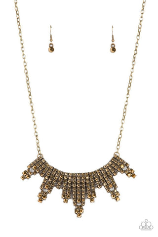 Skyscraping Sparkle - Brass - Aurum Rhinestone Statement Paparazzi Short Necklace
