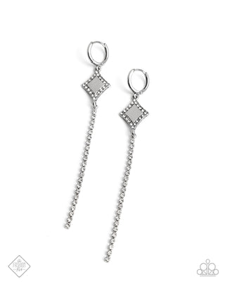 Softly Streamlined - Silver - Hoop and Tassel White Rhinestone Paparazzi Post Earrings