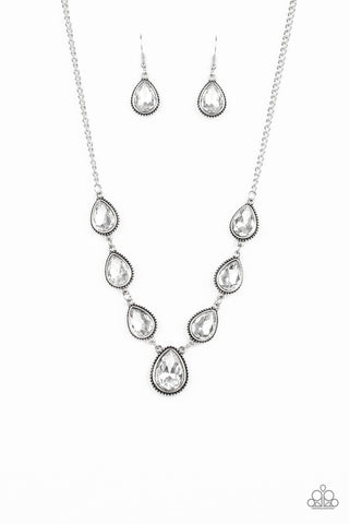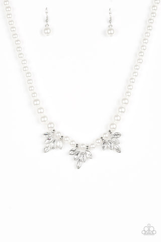 Softly Streamlined - White - Rhinestone Silver Chain Tassel Paparazzi Post Earrings