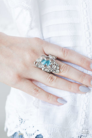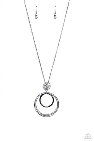 Spanish Sizzle - Black - White Rhinestone Gunmetal Ring Paparazzi Long Necklace
