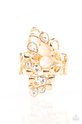 Sparkle at Your Service - Gold - White Rhinestone Hoop Paparazzi Clip-On Earrings