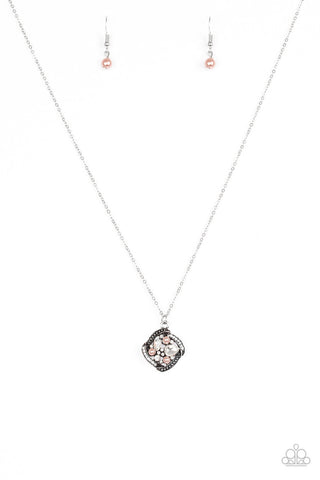 Sparkling Stones - Copper - White Jade Teardrop Stone Paparazzi Short Necklace