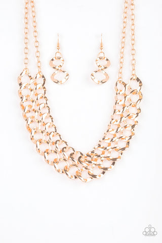 Streamlined Status - Rose Gold - Beveled High Sheen Paparazzi Hinge Hoop Earrings