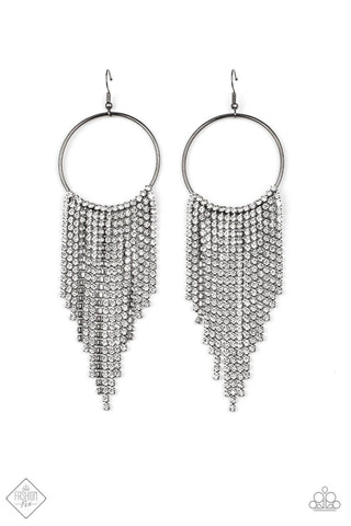 Streamlined Stars - Black - Painted Star White Rhinestone Paparazzi Fishhook Earrings