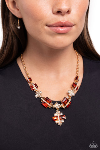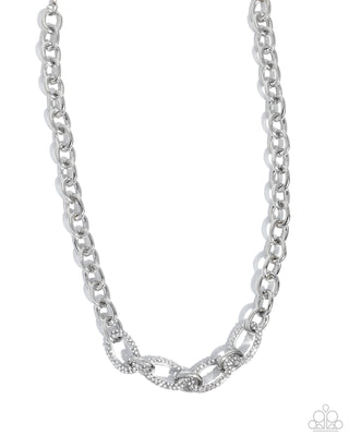 Boom and COMBUST - White - Rhinestone Hammered Silver Disc Paparazzi Long Necklace