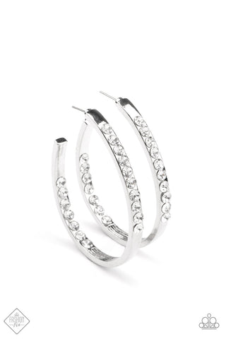 Borderline Baddie - White - Rhinestone Encrusted Teardrop Paparazzi Drop Hoop Earrings