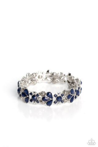 Teasing Torrent - Blue - Round and Teardrop Bead Floral Paparazzi Stretchy Bracelet