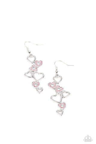 Sweetheart Serenade - Multi - Pink and Red Rhinestone Heart Paparazzi Fishhook Earrings