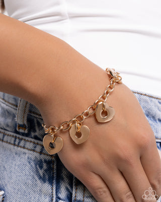 Sympathetic Sweetheart - Brass - Colorful Rhinestone Heart Frame Paparazzi Hoop Earrings