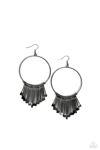 The Little Dipper - Black - Flat Gunmetal Rod Hoop Paparazzi Fishhook Earrings