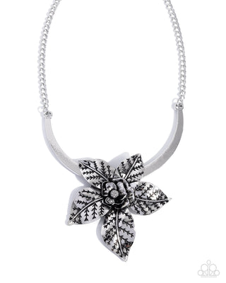 Botanical Breeze - Silver - Hematite Rhinestone Center Flower Paparazzi Short Necklace