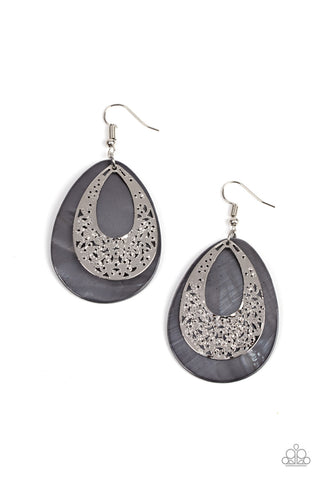 Bountiful Beaches - White Seashell Hammered Silver Teardrop Paparazzi Fishhook Earrings