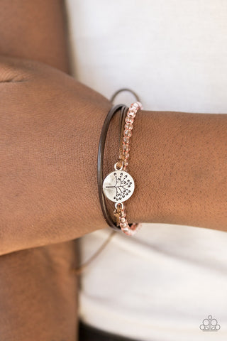 Treetop Trail Guide - Pink - Brown Suede Rose Quartz Stone Paparazzi Pull-Cord Bracelet