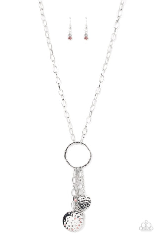 Trinket Twinkle - Pink - Rhinestone Accent Hammered Disc Paparazzi Short Necklace