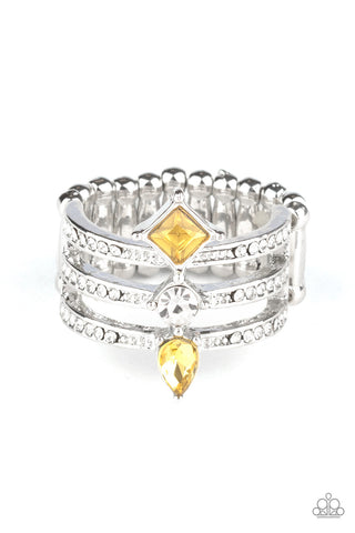 Triple Threat Twinkle - White - Rhinestone Encrusted Criss-Cross Band Paparazzi Ring