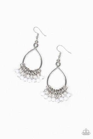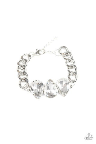 Broach Backdrop - White - Rhinestone Encrusted Silver Cowboy Hat Paparazzi Ring