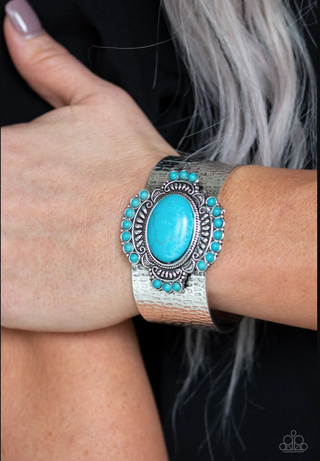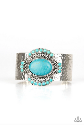 Canyon Quarry - Brass - Turquoise Blue Stone Teardrop Paparazzi Hoop Fishhook Earrings