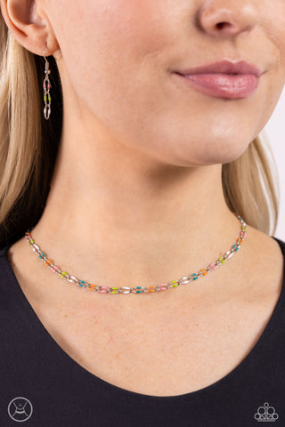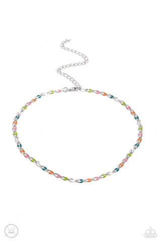 Admirable Accents - Pink - White, and Peach Painted Chain Paparazzi Choker Necklace