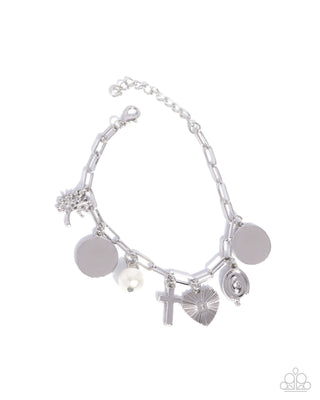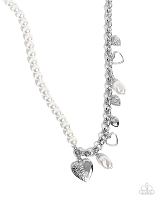 Charming Candidate - White - Pearl Silver Heart Paparazzi Lobster Claw Bracelet