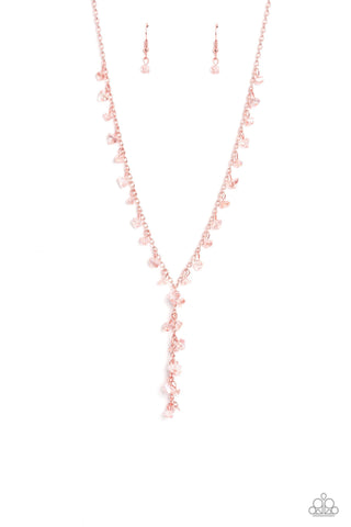 Chiseled Catwalk - Copper - White Gem Encrusted Y-Shape Paparazzi Short Necklace