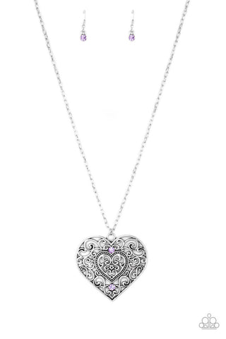 Classic Casanova - Red - Rhinestone Silver Filigree Heart Paparazzi Long Necklace