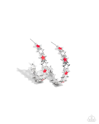 Patriotic Promise - Red - Metallic Star Americana Patriotic Paparazzi Post Earrings