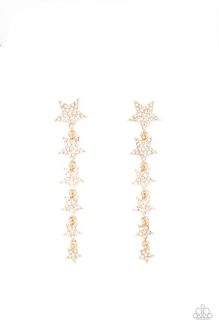 Star-Crossed Success - Gold - White Rhinestone Star Paparazzi Fishhook Earrings