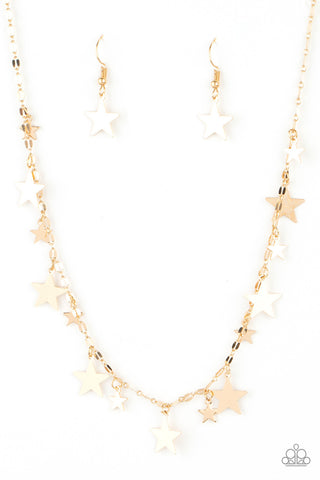 All-Star Attitude - Gold - Hammered Star Patriotic Americana Paparazzi Hoop Earrings
