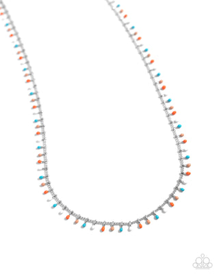 Bermuda Beads - Blue - White, and Orange Painted Bead Paparazzi Short Necklace