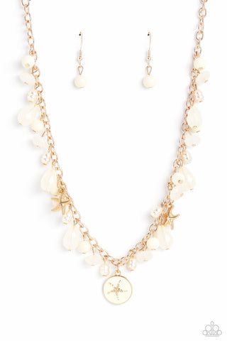 Surfer Serenade - Gold - White Bead and Baroque Pearl Paparazzi Short Necklace