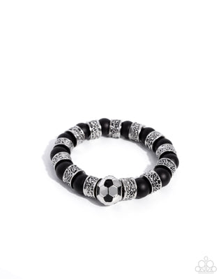 Prairie Protection - Black - Marbled Stone Gold Bead Paparazzi Stretchy Bracelet