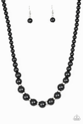 Showtime Shimmer - Black - Bead White Rhinestone Divider Paparazzi Short Necklace
