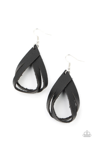 Belize Beauty - Black - Painted Wood Tribal Teardrop Paparazzi Fishhook Earrings