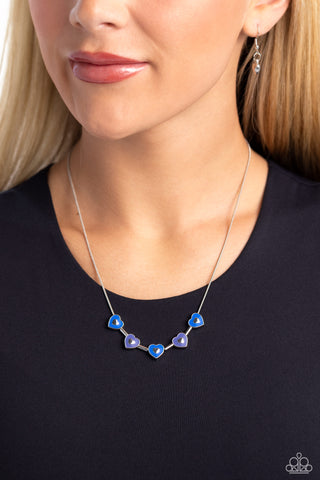 Locket Leisure - Pink - Metallic Heart with Blue Gem Center Paparazzi Short Necklace