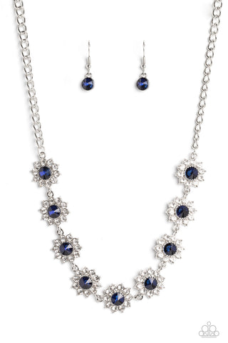 Blooming Brilliance - Blue - Gem Center White Rhinestone Flower Paparazzi Short Necklace