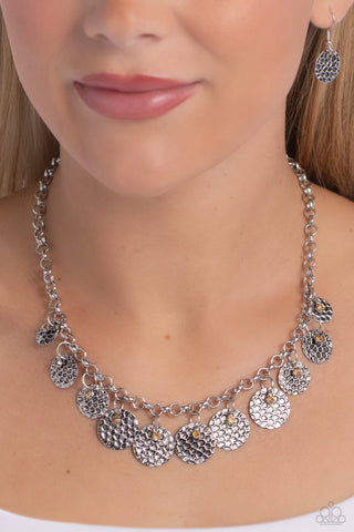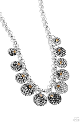Delightfully Dappled - Brown - Rhinestone Hammered Silver Disc Paparazzi Short Necklace