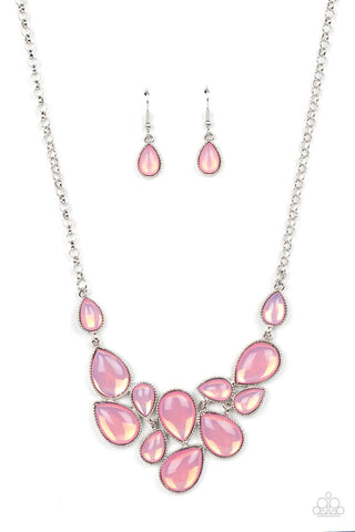 Keeps GLOWING and GLOWING - Pink - Opalescent Teardrop Bead Paparazzi Short Necklace