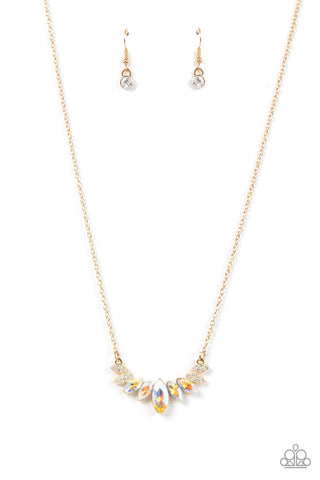 Queen of the Cosmos - Orange - Coral, Blue, Pink Iridescent Gem Paparazzi Short Necklace