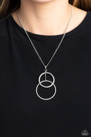 Swanky Shimmer - White - Concave Silver Disc Rhinestone Paparazzi Short Necklace
