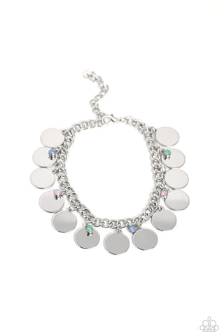 Dreamy Discs - Multi - Opalescent Bead Silver Disc Paparazzi Lobster Claw Bracelet