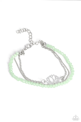 Twinkling Trajectory - Green - White Rhinestone Circle Paparazzi Lobster Claw Bracelet