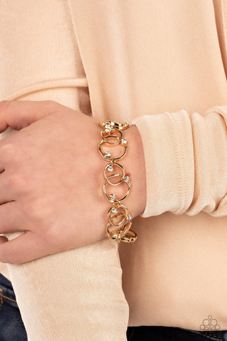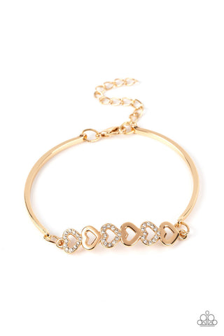 Attentive Admirer - Gold - White Rhinestone Heart Paparazzi Lobster Claw Bracelet