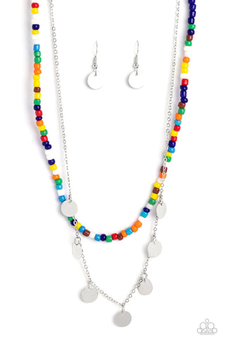 Comet Candy - Multi - Colored Seed Bead Silver Disc Tiered Paparazzi Short Necklace
