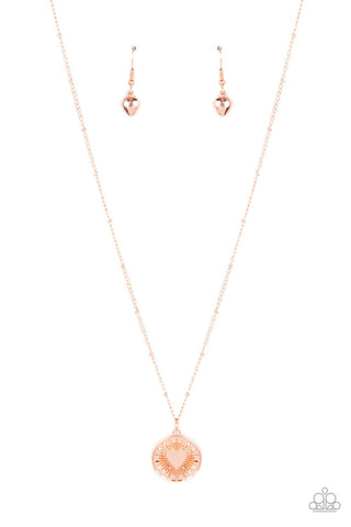Lovestruck Shimmer - Copper - Heart Starburst Pendant Paparazzi Short Dainty Necklace