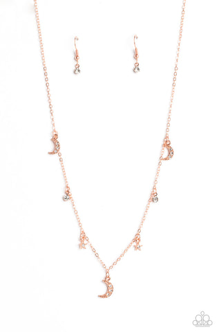 Lunar Lagoon - Copper - White Rhinestone Moon and Star Charm Paparazzi Short Necklace