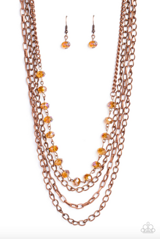 Taunting Twinkle - Copper - White Rhinestone Encrusted Bead Paparazzi Short Necklace