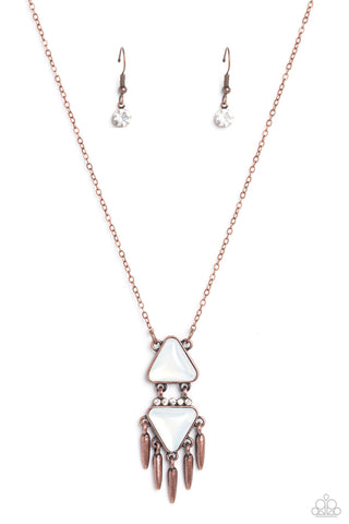 Under the FRINGE - Copper - White Opalescent Triangle Bead Paparazzi Short Necklace